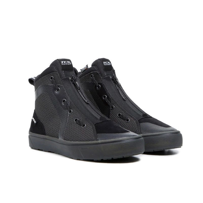 Ikasu Air is the certified and breathable motorcycle shoe, ideal for use in mild climates. It presents casual look and the comfort of a sneaker, perfect for everyday use. The reinforcements on malleolus with D30ยฎ inserts, the toe and heel protections and the rubber lever guard guarantee maximum protection, while the presence of the Ortholite & reg footbed with durable and highly breathable cushioning gives the shoe high levels of comfort. Maximum protection is guaranteed by the special Zplateยฎ insert made of molded polymer, which combines transverse rigidity for maximum safety and longitudinal flexibility thanks to its Z-shape. Zplateยฎ allows the shoe to follow all the natural movements of the foot both in the saddle and during walking, but at the same time protects avoiding the crushing of the shoe itself in case of impact.
