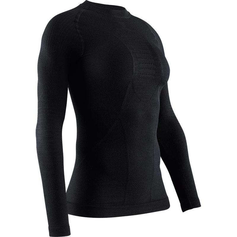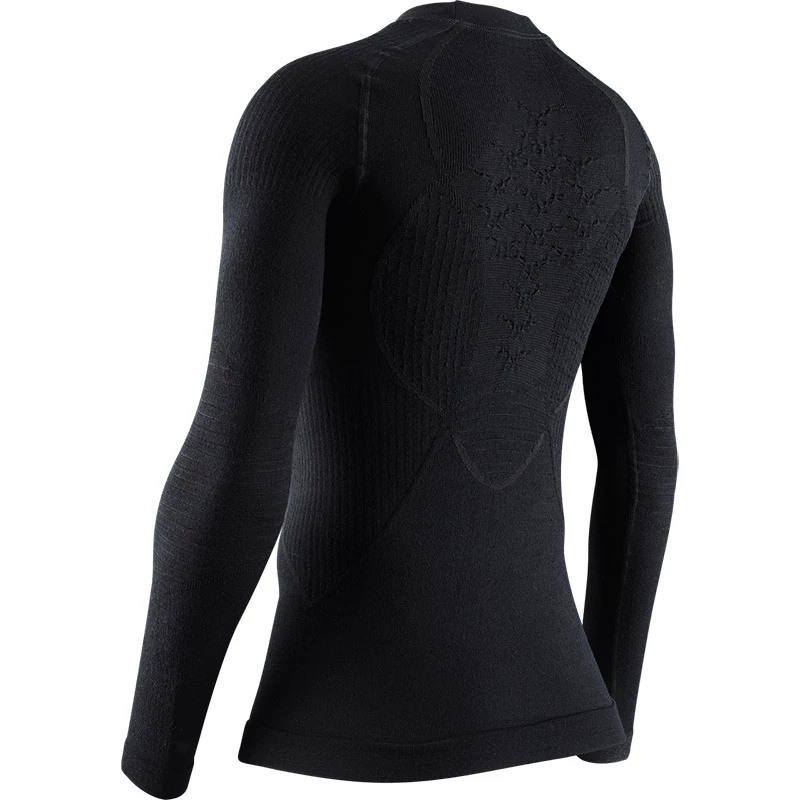 On cold winter days, treat yourself to effective thermoregulation and outstanding wearing comfort with the X-BIONICยฎ APANIยฎ 4.0 MERINO SHIRT ROUND NECK LONG SLEEVE MEN. The new 4.0 generation is the first to feature the Retinaยฎ ultra-high definition quality for unique accuracy of functionality. For a targeted effect, intelligent functional zones can be positioned even more precisely in the ultra dense knitted fabric. The high-performance functional underwear for ambitious winter sports enthusiasts offers the top comfort of the APANIยฎ Merino Premium fibre for a decisive plus in performance even in extreme cold. The legendary patented 3D Bionic Sphereยฎ System with ThermoSyphonยฎ technology is more powerful than ever: Complex 3D structures and Y-shaped elements maximize air exchange, cool when you sweat and warm when you are cold now faster and more efficient than ever. Functional zones such as the Air-Conditionig Channelยฎ and the AirComPlex-Zone, as well as ISO-Shoulder and ISO-Chest Area, are also performance-enhancing thermoregulating technologies. Expansion Ribsยฎ at the elbows ensure optimum climate comfort and at the same time offer full freedom of movement.